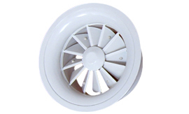 具有送出旋转射流,诱导比大,风速度衰减快等特点。在通风空调系统中,可做大风量大温差送风,以减少风口数量。可用于3米内的低空间送风,也可用于10米高的大面积空间送风。尺寸由用户选定